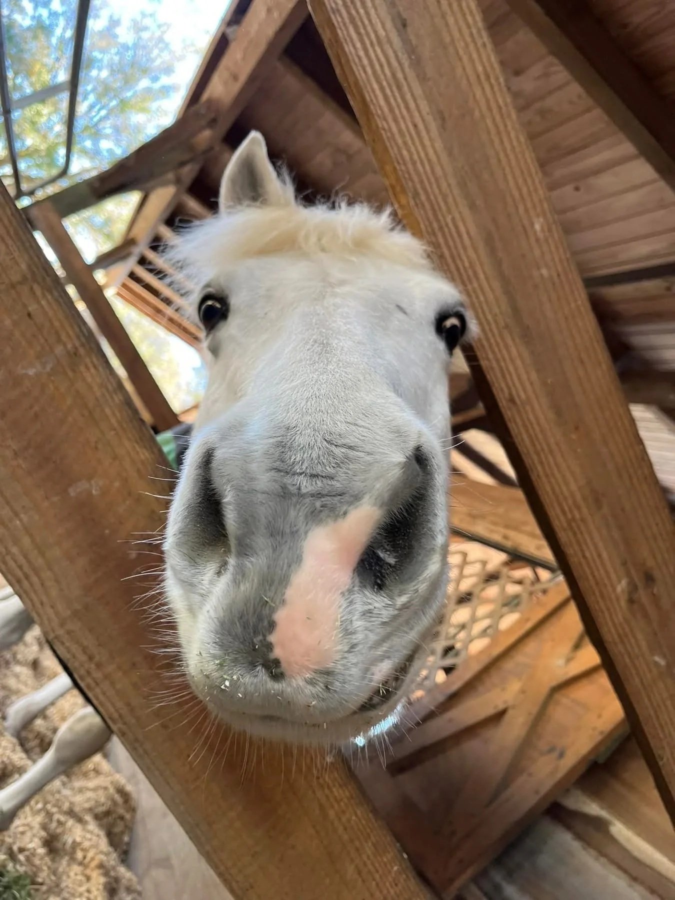 Micah is a 15-year-old percheron/thoroughbred mare. She was donated by Sherri O’ Connor. Micah stands at 16 hands tall. Micah was formerly used as a hunter/jumper show horse. At Bakas Micah is used for all riding disciplines and excels at back riding. Micah enjoys all the carrots her riders bring her.